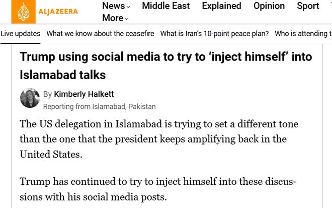 半岛电视台报道指出,特朗普利用网络平台试图影响谈判进程。