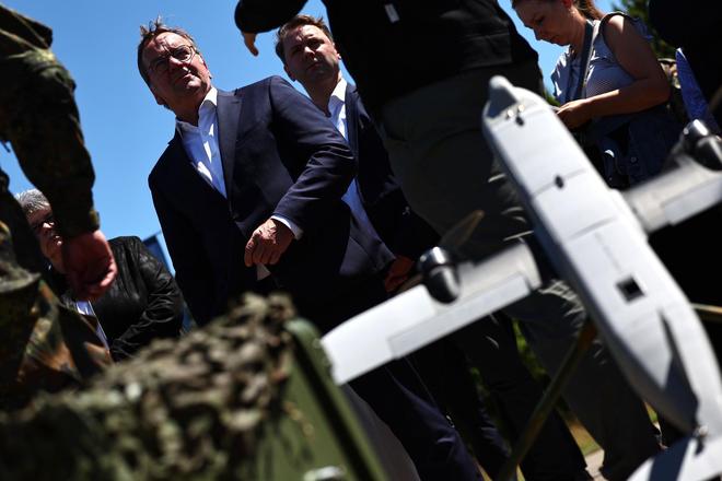 ▲2025年7月22日,德国国防部长鲍里斯视察联邦国防军一处实验室 据视觉中国