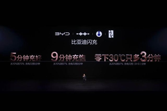 在今年三月五日,比亚迪在深圳举办了一场发布会,推出了第二代刀片电池以及闪充技术,并创造了全球量产最快的充电记录——从百分之十到百分之七十只需五分钟;而从百分之十到百分之九十七仅需九分钟。即便在零下三十度的严寒条件下,也能在短短三分钟内将电量从百分之二十提升至百分之九十七。