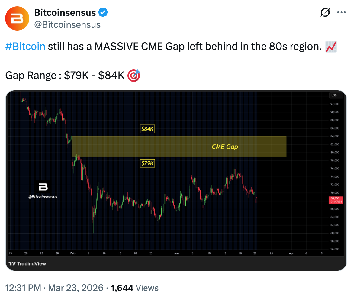 在本周的开始,比特币CME期货价格大约在7万美元处存在明显的缺口。随着最新的价格上升,这一缺口已被填补。接下来,交易员将关注8万美元附近的新的缺口。