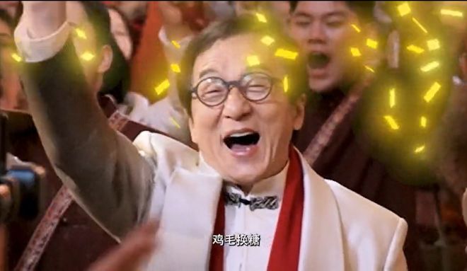 开场时,一根轻盈的羽毛飘落在成龙手上,伴随他一声悠长的“鸡毛换糖喽”,这项承载城市集体记忆的传统交易方式瞬间被唤醒。
