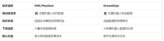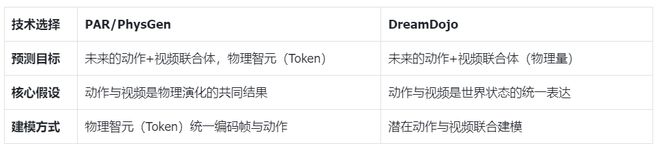 今年2月,英伟达发布了DreamDojo——一个基于大规模视频训练的通用机器人世界模型。对比PAR/PhysGen与DreamDojo,会发现两条路线在核心技术理念上惊人一致。