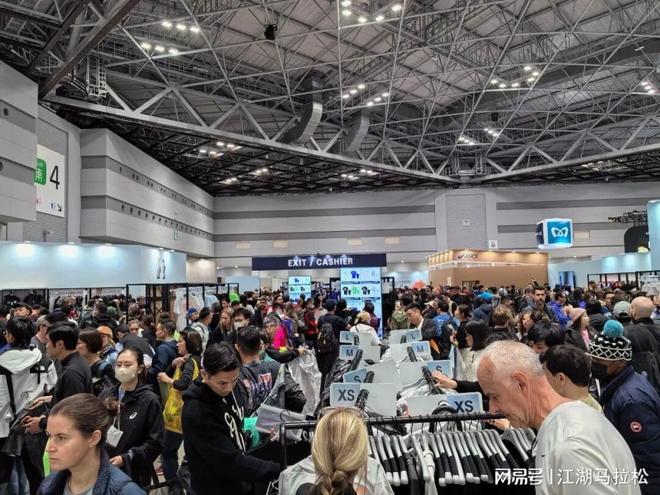 在马拉松赛前博览会上,当你看到排起长长的队伍时,第一反应会是什么?不管是官方举办的中国马拉松博览会还是各赛事的博览会,领取福利都是最受欢迎的部分。有的直接发放,有的需要关注或参与小活动才能获得。在东京马拉松博览会上,虽然一些拍照留念的赞助商展台前也人潮汹涌,但最长的队伍出现在主赞助商ASICS的产品售卖区,真是摩肩接踵、人声鼎沸。进入展厅还得排队等待许久,我是排了五分钟才进去的。感觉好像东西不要钱一样,有大量东京马拉松限定款以及品牌其他产品供选择。我选了两件T恤和一顶帽子,在结账时队伍又排了十三分钟。这显然不是赛事强制要求发放的物资,完全是参赛者和其他参观者的市场需求推动的结果。