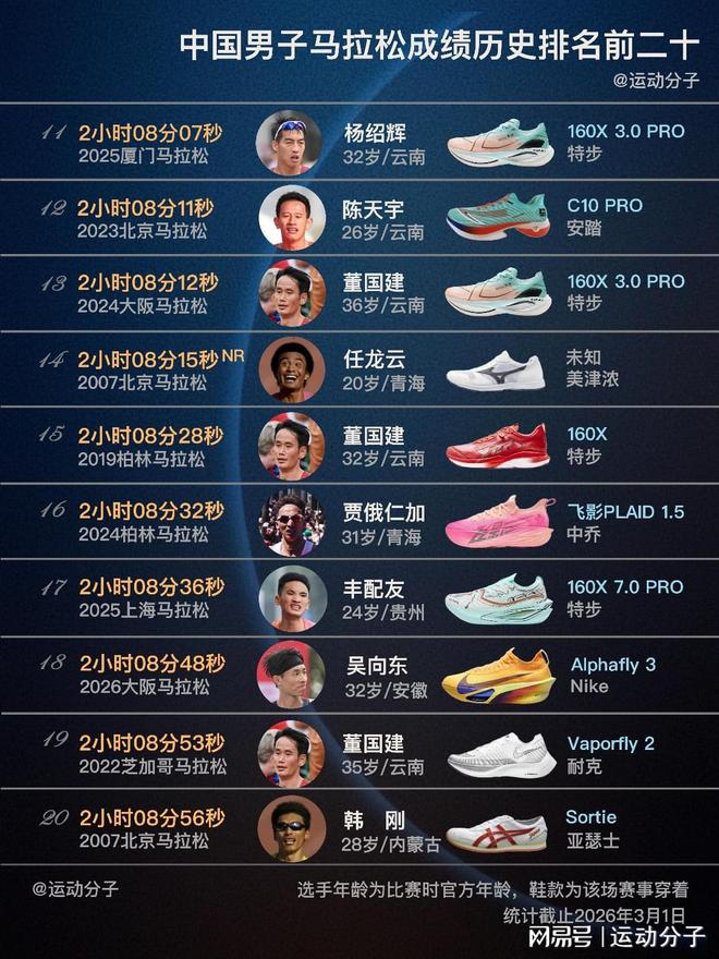 现役跑者如何杰、丰配友、杨绍辉、吴向东、陈天宇、董国建和贾俄仁加,均是在超级跑鞋时代取得佳绩的佼佼者;
