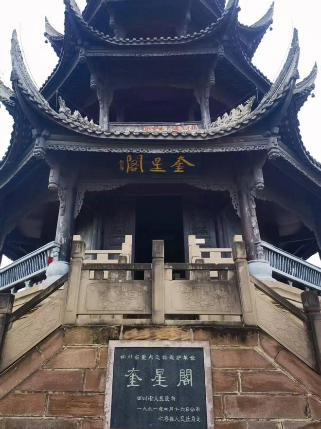 魁星阁是仁寿城的制高点,可俯瞰全城。古代,魁星阁与文庙、书院一起构成科举时代的教育建筑群,备受学子尊崇。然而,今天是工作日,天气不佳,游客稀少,大多是无需考试的人士前来游览。