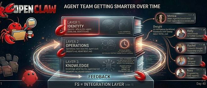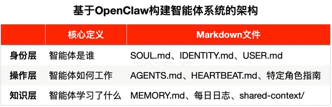 这套系统采用了三层架构设计:身份层、操作层与知识层,所有协调工作均基于这些简单的文本文件进行。