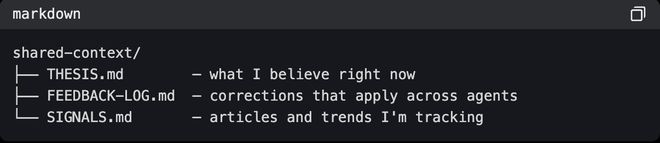 其中,THESIS.md是他当前关注的核心,包括Saboo关注什么、已经写过什么、还有哪些缺口。依据该文件,研究智能体Dwight会确定调研优先级,Kelly制定写作思路,Ryan策划文章,使得所有智能体都以同一个权威信息源保持步调一致。