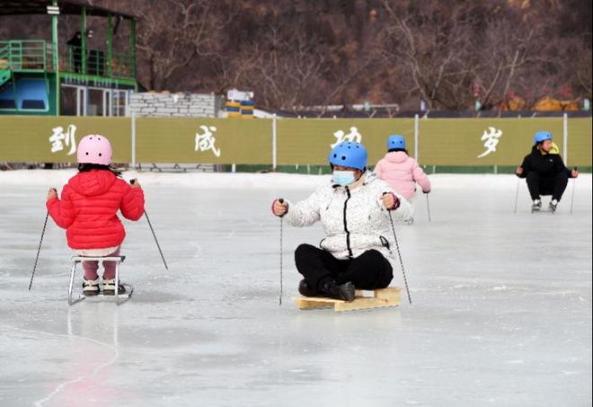 今年一月,在北京平谷的一个活动现场,游客们在冰车上尽情玩耍。新华社记者任超摄