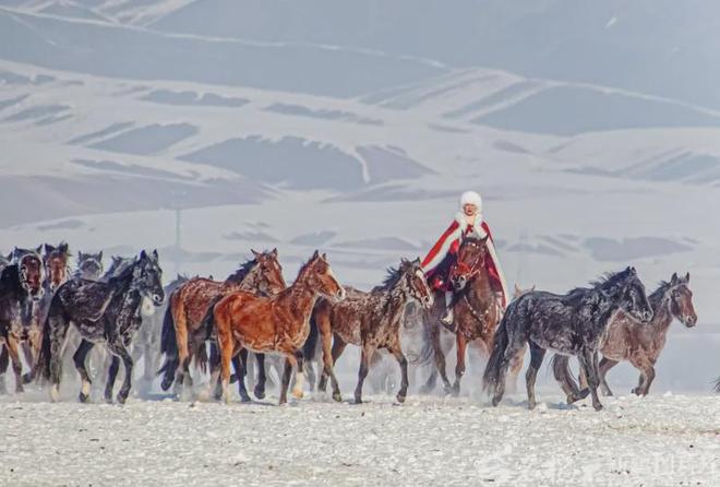 在2020年12月的最后一天,贺娇龙在昭苏县天马旅游文化园策马雪原,为家乡推广旅游。