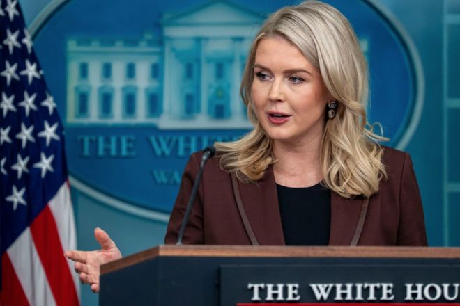 在一次白宫记者会上被问及美军封锁伊朗港口的时间表时,莱维特回答说她无法替总统特朗普设定具体期限,并指出这项措施已经全面启动,针对进出伊朗所有港口的所有船只实施强制执行。