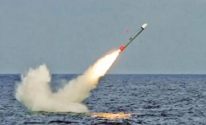 “战斧”潜射型导弹发射瞬间 图片来源:中国国防报