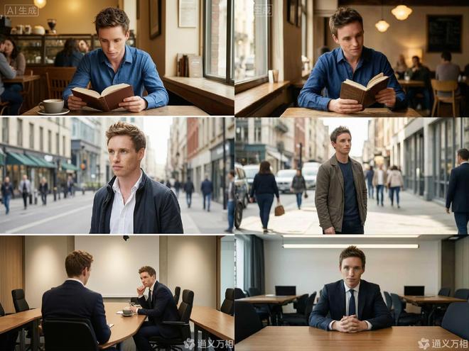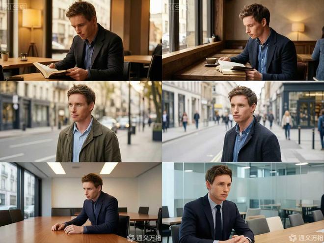 Wan2.7-Image在跨场景多主体一致性方面也表现出了突出的能力,能够在不同的环境中精准再现参考人物的核心特征和整体气质。无论是咖啡馆、户外街拍还是正式会议室,生成的照片都能体现出高度一致的画面风格与环境氛围。