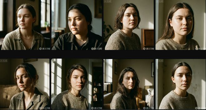 从实测结果来看,Wan2.7-Image模型能够对脸型特征做出差异化响应,不同生成样本中,人物面部轮廓呈现出从鹅蛋脸到圆脸、方脸的明显区分,下颌线、颧骨宽度、面部长宽比等核心脸型指标存在可感知的差异。