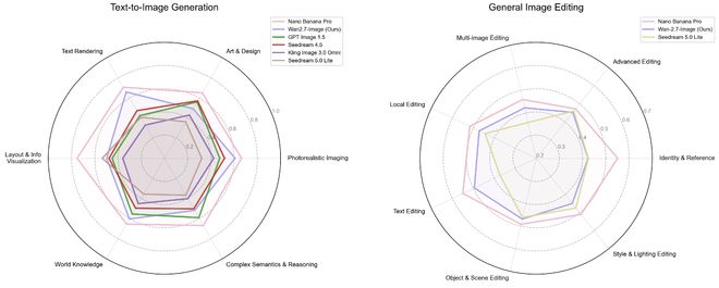 在人类偏好盲测中,Wan2.7-Image多项能力位列全国第一,综合成绩接近Nano Banana Pro。同步上线的Wan2.7-Image-pro版本在训练数据规模和模型尺寸上进一步扩大,构图稳定性和语义理解精准度更高。