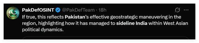 有巴基斯坦网民还表示,如果真能促成美国和伊朗的停火,这不仅反映出自己国家在地缘政治层面的操盘能力,还将让印度在地缘政治中被“边缘化”。