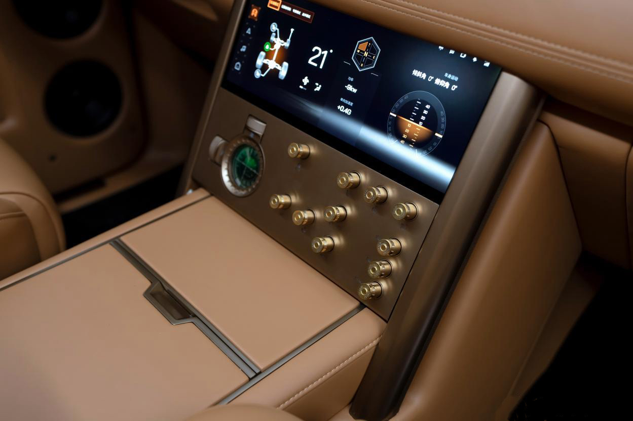 在内饰方面,北京81回应了用户对于“硬派不等于粗糙”的需求,在提升接触区域材质质感的同时优化了色彩搭配,使其既保留了硬朗气质又提升了舒适性和高级感。中控台按键也将采用弹壳样式设计,便于在越野颠簸环境中操作。动力配置包括非承载式车身和独立悬架系统,并配备了双电机四驱系统。