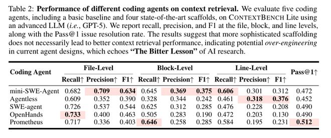 该基准不再仅仅关注“修复了吗?”这样的表面问题,更深入地探究了在解决问题的过程中智能体具体检索和使用了多少代码上下文。