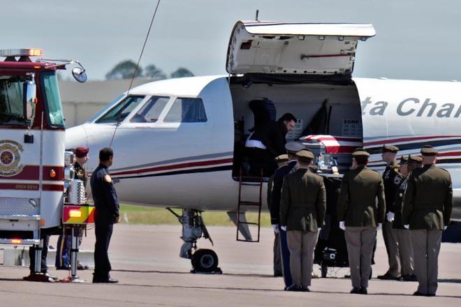 3月18日,阵亡的美国陆军预备役少校科迪·霍尔克的遗体在莱克兰林德机场降落。