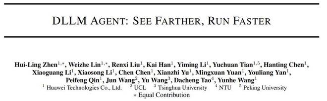 在最近王云鹤主导的论文《DLLM Agent: See Farther, Run Faster》中,其团队探讨了一个基础但经常被忽视的问题:在智能体(Agent)框架、监督数据和交互预算完全相同的情况下,底层语言模型的生成范式(基于扩散的 DLLM 与基于自回归的 AR)是如何深刻影响智能体的规划、工具使用行为以及整体决策轨迹的。