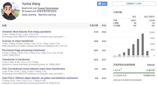 作为一位资深研究者和工程师,王云鹤拥有非常亮眼的学术履历,其谷歌学术引用量已经突破了 3.3 万。