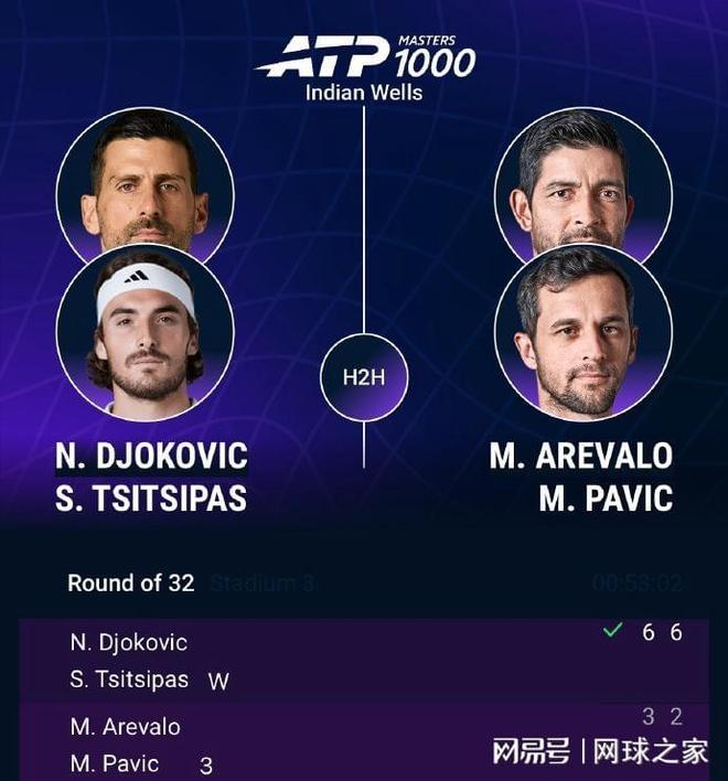 在双打比赛中,持外卡出战的德约科维奇/西西帕斯在首轮中以6-3 6-2战胜了阿雷瓦洛/帕维奇组合,并收获了一日两胜的成绩。下一轮他们将对阵表兄弟组合林德克内西/瓦舍罗。而辛纳/奥佩尔卡则不敌头号种子格拉诺勒斯/泽巴罗斯,止步首轮。