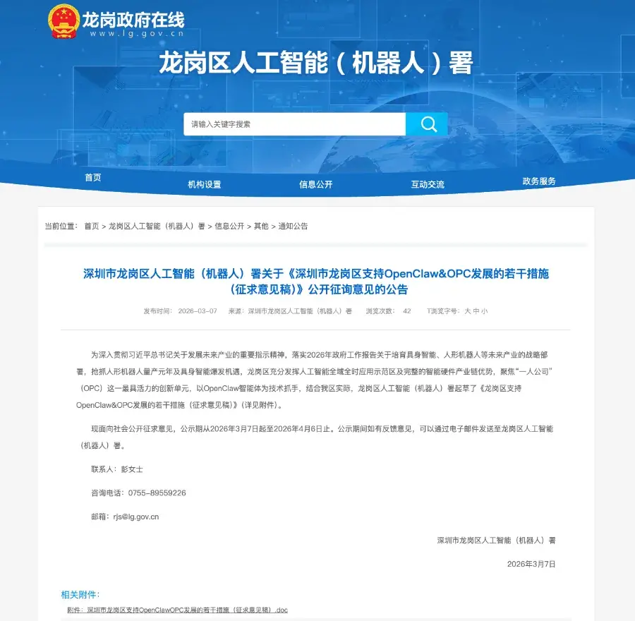 深圳市龙岗区发布的《支持OpenClaw及OPC发展的若干措施(征求意见稿)》被誉为“龙虾十条”,一经推出便轰动业界。