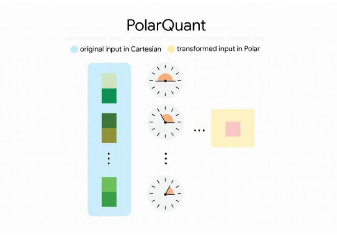 PolarQuant将向量转换为极坐标,只保留半径和角度,其中半径代表核心数据强度,角度则代表数据的方向或语义。这种方法避免了复杂的归一化操作,显著节省了内存空间。