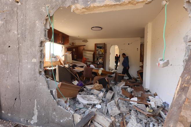 3月13日,人们在以色列北部城镇扎尔齐尔一处遭伊朗导弹袭击的地点查看 新华社发(吉尔·科恩·马根摄)