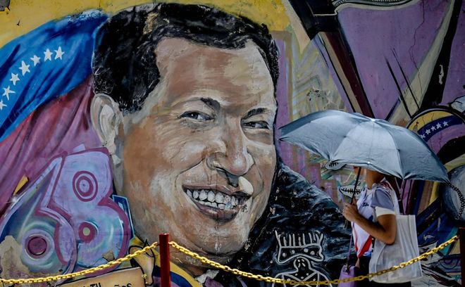 在委内瑞拉,一名女子参加纪念查韦斯去世13周年的活动。