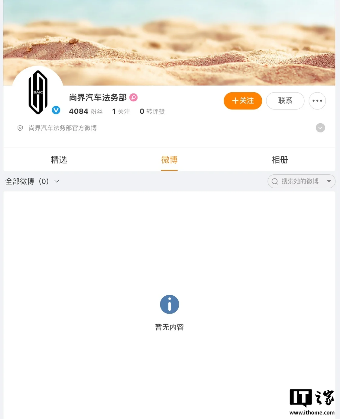 目前,“尚界汽车法务部官方微博”的微博账号尚未发布任何内容。