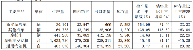 在这一年中,公司的汽车销售收入达到了64.4亿元,同比增长了52.71%;同时,摩托车和通机业务的收入为24.8亿元,增长约16%。