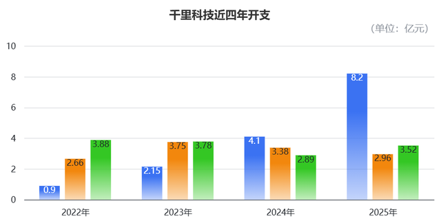 进一步拆分数据,千里科技在2025年的开支,多数都贡献给了研发。