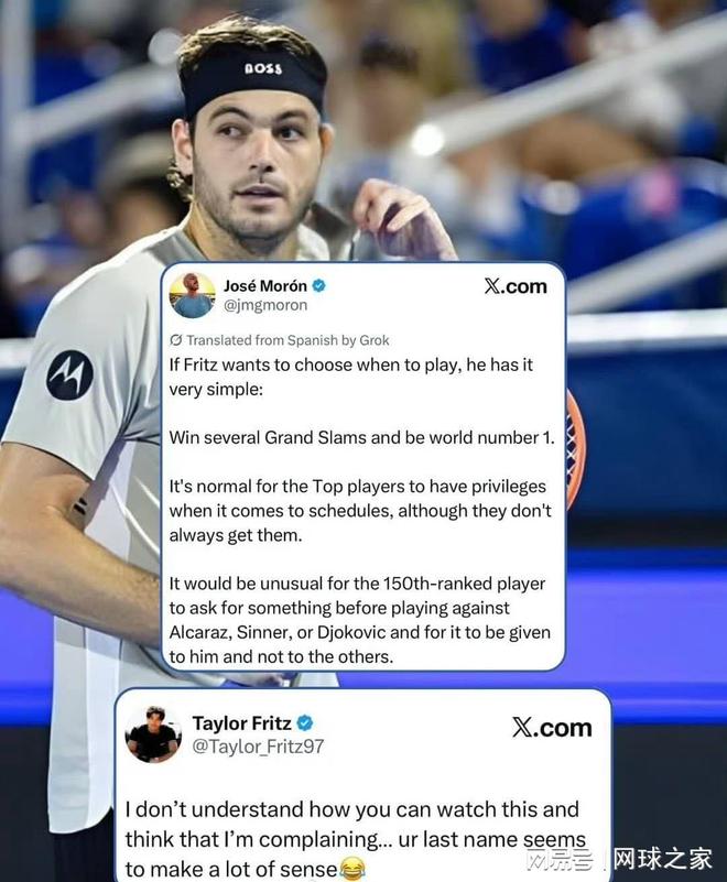 然而,这位美国选手的言论很快引起了西班牙记者的关注与评论。该记者在社交媒体上发文批评弗里茨是在“嫉妒”,并指出如果他想获得特殊待遇,必须先达到“大满贯冠军加世界第一”的成就。