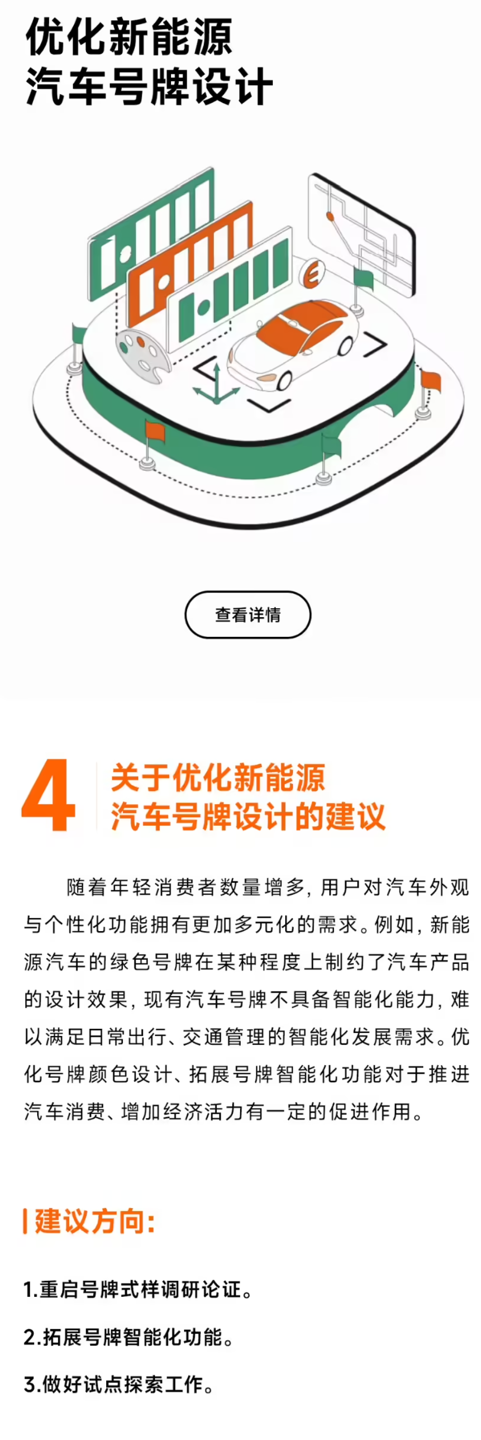 在去年举行的全国两会期间,全国人大代表、小米公司创始人兼董事长雷军提出建议,希望在新能源汽车号牌设计中引入智能化元素,例如内置车辆交通信息卡功能和二维码查询系统,以便于交通管理和应急处理。