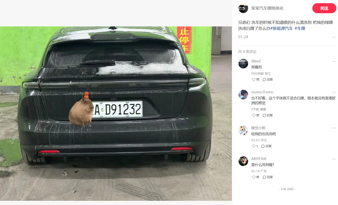 小型新能源车辆的车牌采用了渐变绿色的设计方案,旨在体现环保理念。然而,在过去的几年里,这一设计也受到了不少网友关于美观度方面的批评。