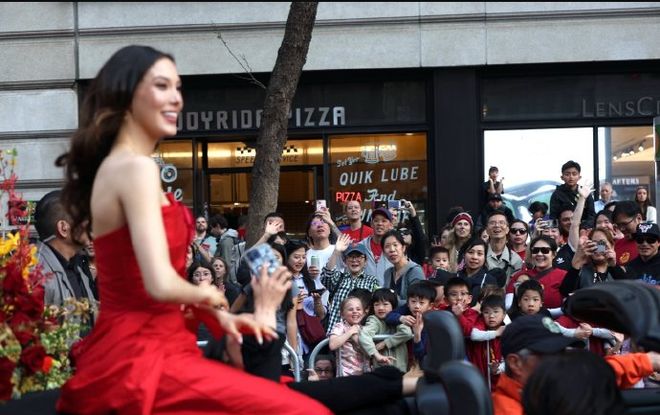 在这次旧金山春节巡游中,她无疑成为了全场焦点人物。