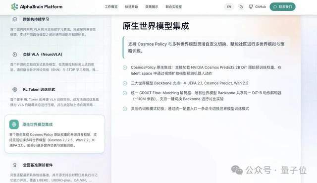 AlphaBrain Platform的核心是为通用智能机器人提供高性能的计算能力和丰富的功能支持。该平台不仅可以运行智平方自家最先进的三个“全球首个”模型,还能兼容其他头部公司的前沿模型。