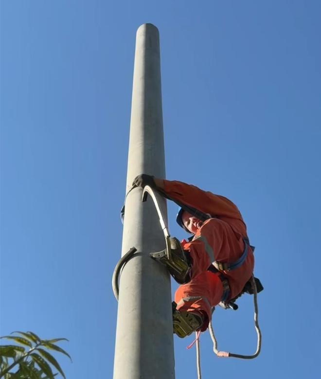 提到多年的爬高作业经历,任女士表示目前她在爬铁塔方面还是新手,没经历过太难的状况,但此前爬电杆时确实遇到过危险,日常电杆倒地、线盘出现特殊状况等情形还是会时有发生: