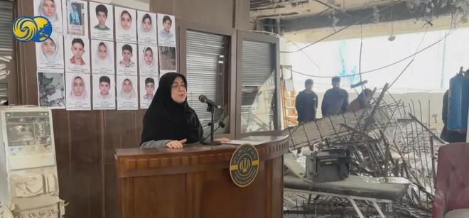 伊朗政府发言人穆哈杰拉尼在被炸医院举行新闻发布会