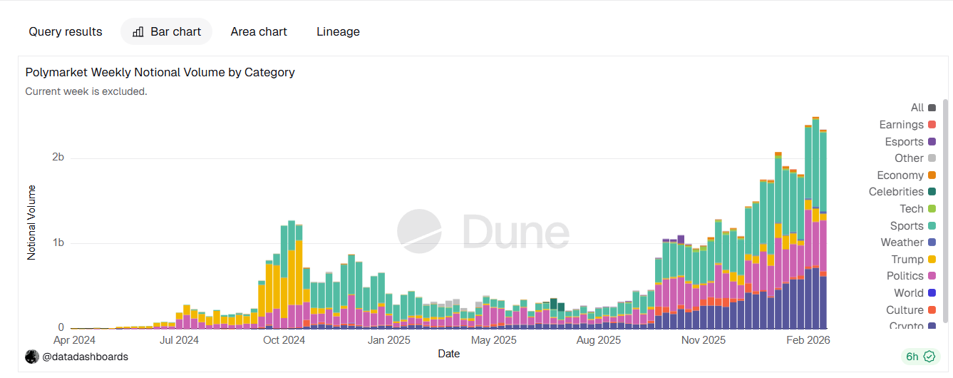 自近期美以与伊朗的军事冲突爆发以来,预测市场上的交易活动持续增加。根据Dune的最新数据,政治相关的合约在Polymarket上已成为第三大类别,交易量达到了5.98亿美元,并在Kalshi中排名第八,交易量为1600万美元。