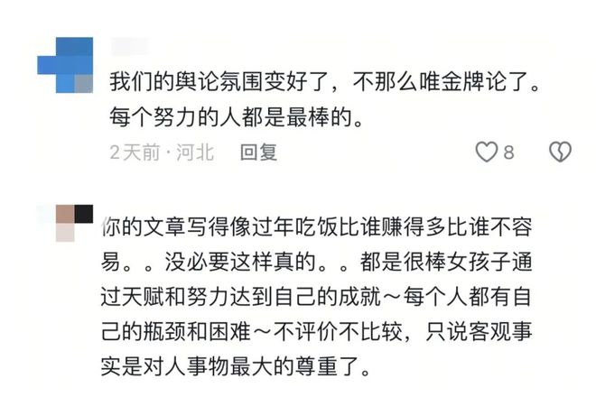 这些为李方慧发声的话语引发了争议。有人被她的经历感动,认为更多默默无闻的运动员因这样的报道而受到关注;但也有人质疑为何要用对比的方式来讲述一个运动员的价值。