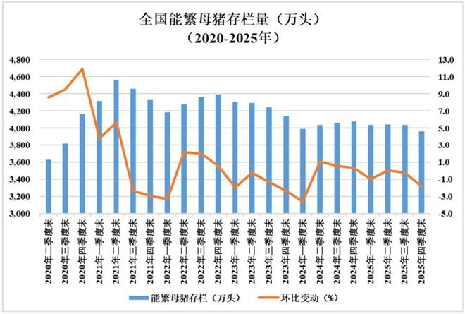 ·受益于PSY提升,能繁母猪存栏量4100万头的周期变盘点出现下探,自2023年三季度末以来,全国能繁存栏量其实就已经跌破4100万头,但周期没有出现明显拐头的动作,根据Mysteel的研究,截止2025年末,全国能繁母猪存栏量3961万头,仍超出正常保有量1.6%,未来猪周期变盘点可能需要通过本轮猪周期进行观察。