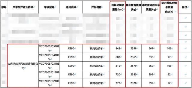 ES90的入门级版本配备了磷酸铁锂电池,容量为77kWh和单个后置电机输出功率为240千瓦,CLTC工况下的续航里程为608公里。中配车型则选用了一块92kWh的三元锂电池,并且采用了一个245千瓦的单个后置电机,提供了720公里和777公里两种续航版本;而顶配四驱版车辆搭载的是106kWh容量的电池,前后双电动机综合功率达到500千瓦,续航里程分别为815公里和848公里。所有车型的最大速度均为180公里每小时。