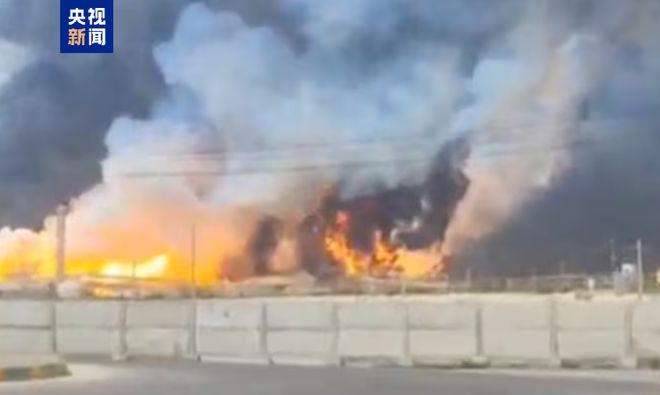 在伊朗南部帕尔斯天然气田遭到袭击后,现场燃起了熊熊大火。