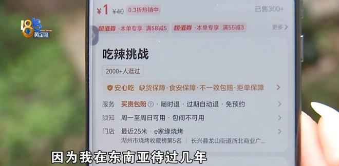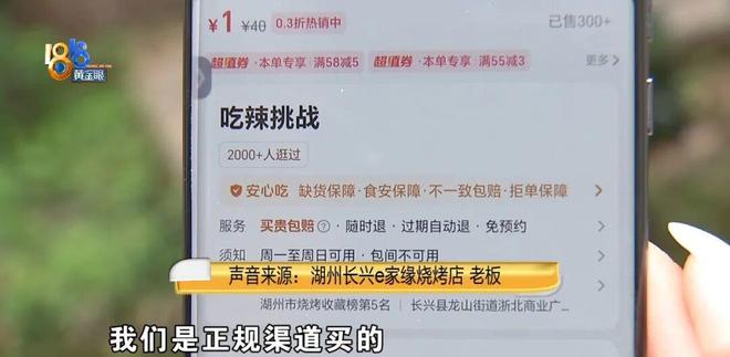 他前往湖州长兴浙北商业广场内的“e家缘烧烤”店参与挑战活动。