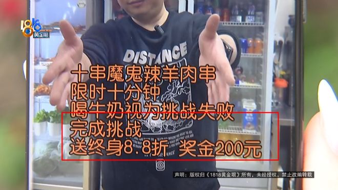 宋先生表示,他在刷短视频时无意间看到了一个吃辣挑战的视频。该视频声称10分钟内吃完10串羊肉串可以获得奖金200元,并且能享受永久8.8折优惠券,于是他下单购买了此活动券。
