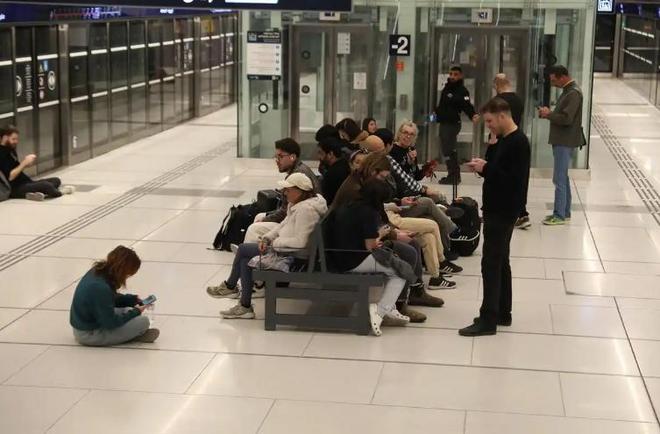 2月28日,在特拉维夫的一个地铁站里可以看到人们躲避空袭的场景(新华社提供)。