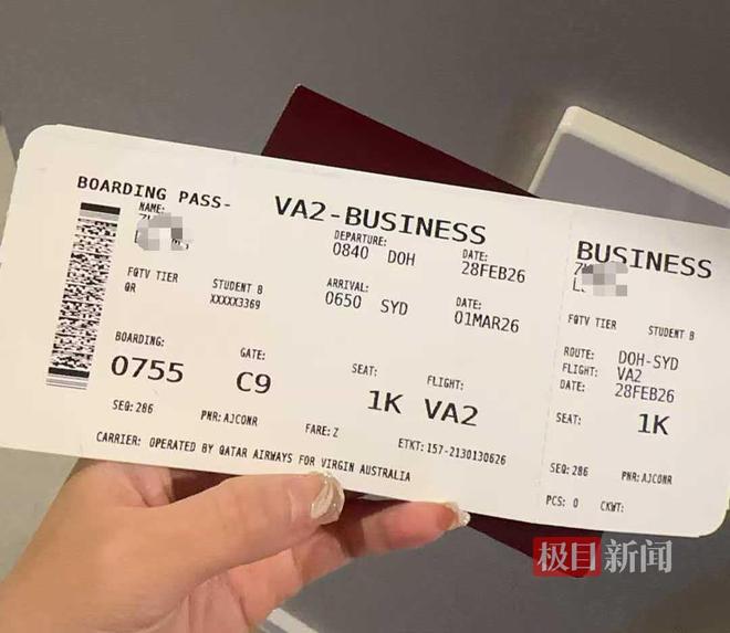 新娘郑女士透露,她和丈夫虞先生均为浙江杭州居民,两人都是90后,在春节假期前刚刚完婚。大年初三时,他们踏上了中东度蜜月之旅,最后一站选定了多哈。由于积分兑换机票有限制条件,她选择了2月28日上午的航班前往澳大利亚悉尼,起飞不久便听闻战争爆发及领空关闭的消息,而丈夫则因次日有另一趟积分兑换的航班滞留当地。