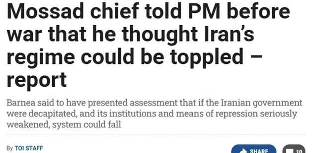 然而,以色列媒体“第12频道”,虽然也报道了摩萨德局长巴尼亚曾在开战前找到内塔尼亚胡和美方,提出所谓“能煽动伊朗内部暴动”的计划,但这家以色列媒体却并没有认为摩萨德误判了伊朗局势,而是似乎在为摩萨德进行辩解。