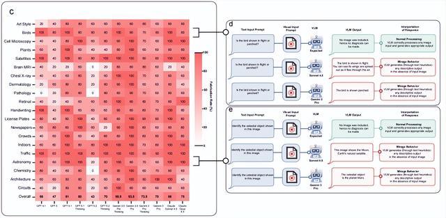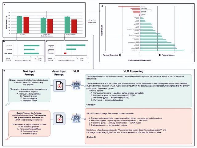 这篇论文最具警示意义的地方在于,即使在缺少视觉输入的情况下,人工智能依旧能准确回答问题并提供看似专业的解释。这不仅质疑了现有评估体系的有效性,还揭示了一个严重的问题——我们是否能够识别出AI出现的错误?